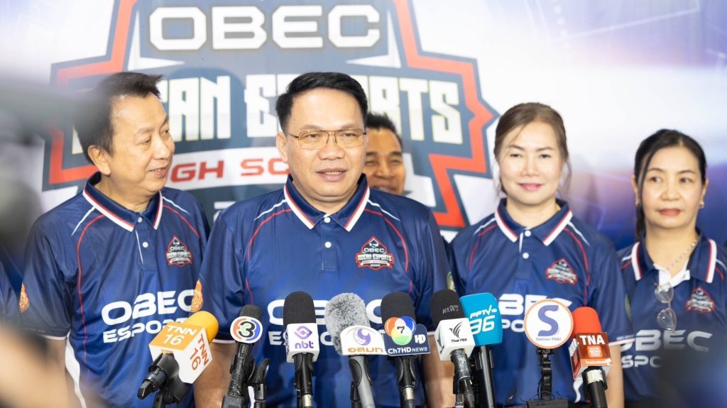 วันที่ 25 มีนาคม 2569 ดร.วรัญญภรณ์ ชาลีรักษ์ ผู้อำนวยการสำนักเทคโนโลยีเพื่อการเรียนการสอน (สทร.) กล่าวรายงาน วัตถุประสงค์ต่อ ดร.พิเชฐ โพธิ์ภักดี เลขาธิการคณะกรรมการการศึกษาขั้นพื้นฐาน ให้เกียรติเป็นประธานในพิธีเปิดการแข่งขัน OBEC ASEAN ESPORTS HIGH SCHOOL 2025 รอบ FINAL ณ ไอส์แลนด์ ฮอลล์ ชั้น 3 ศูนย์การค้าแฟชั่นไอส์แลนด์ กรุงเทพมหานคร