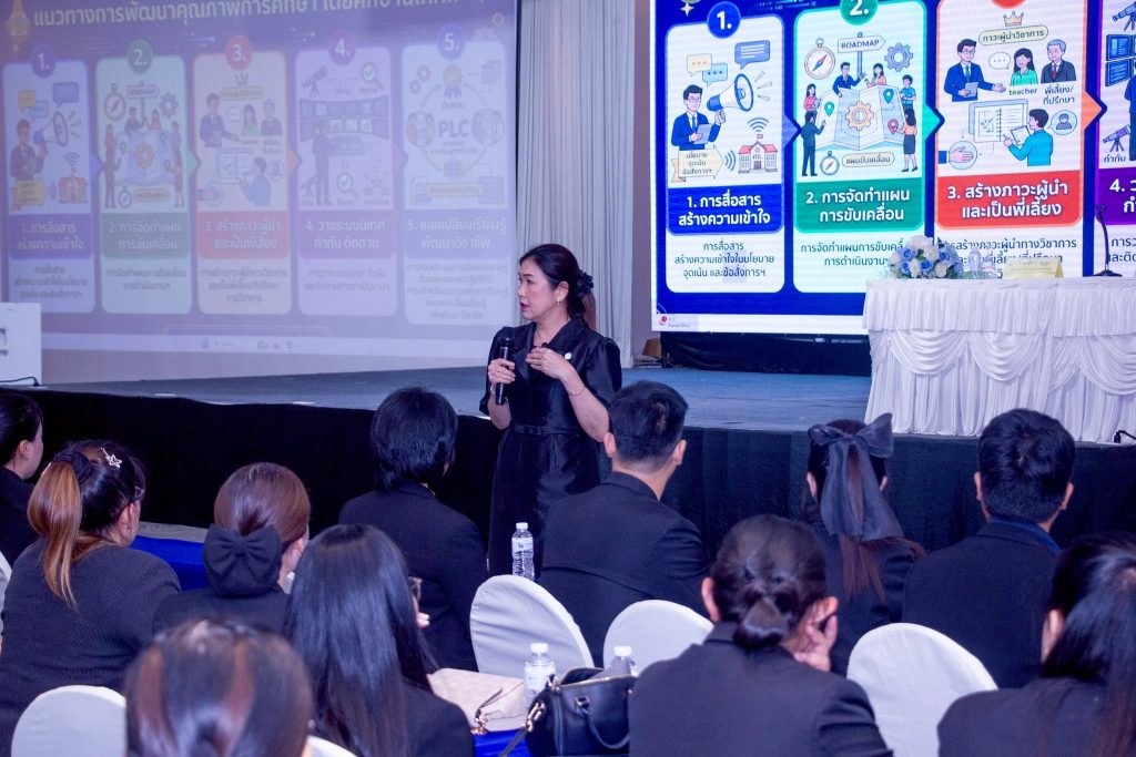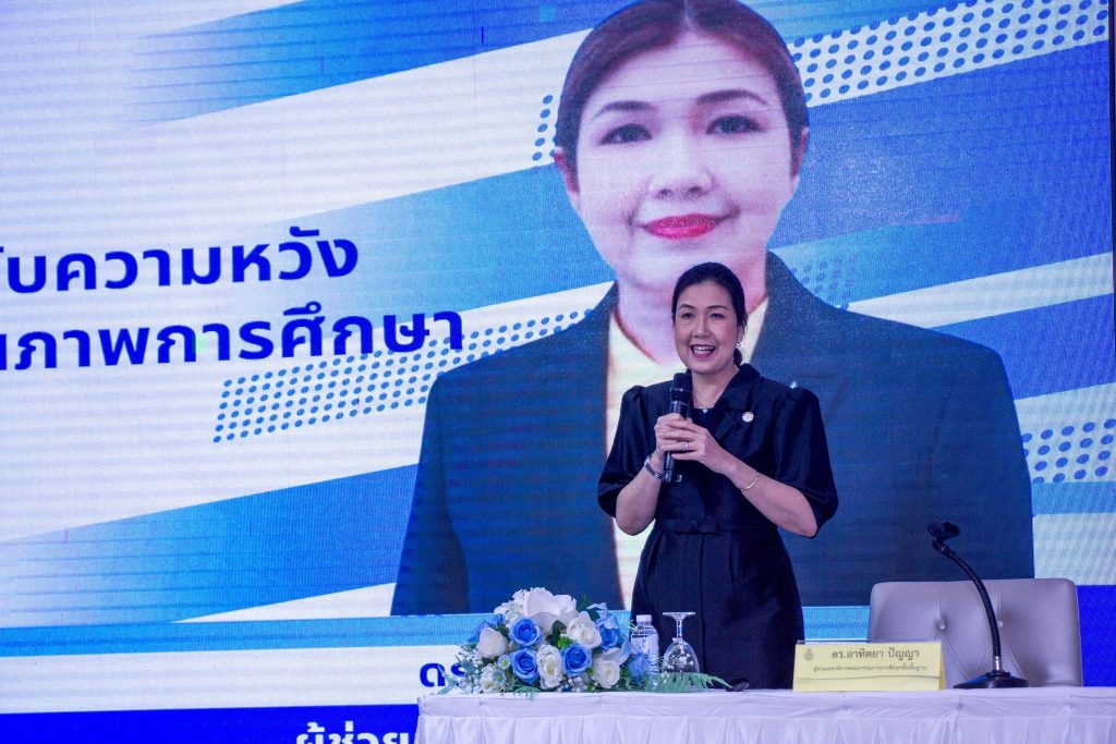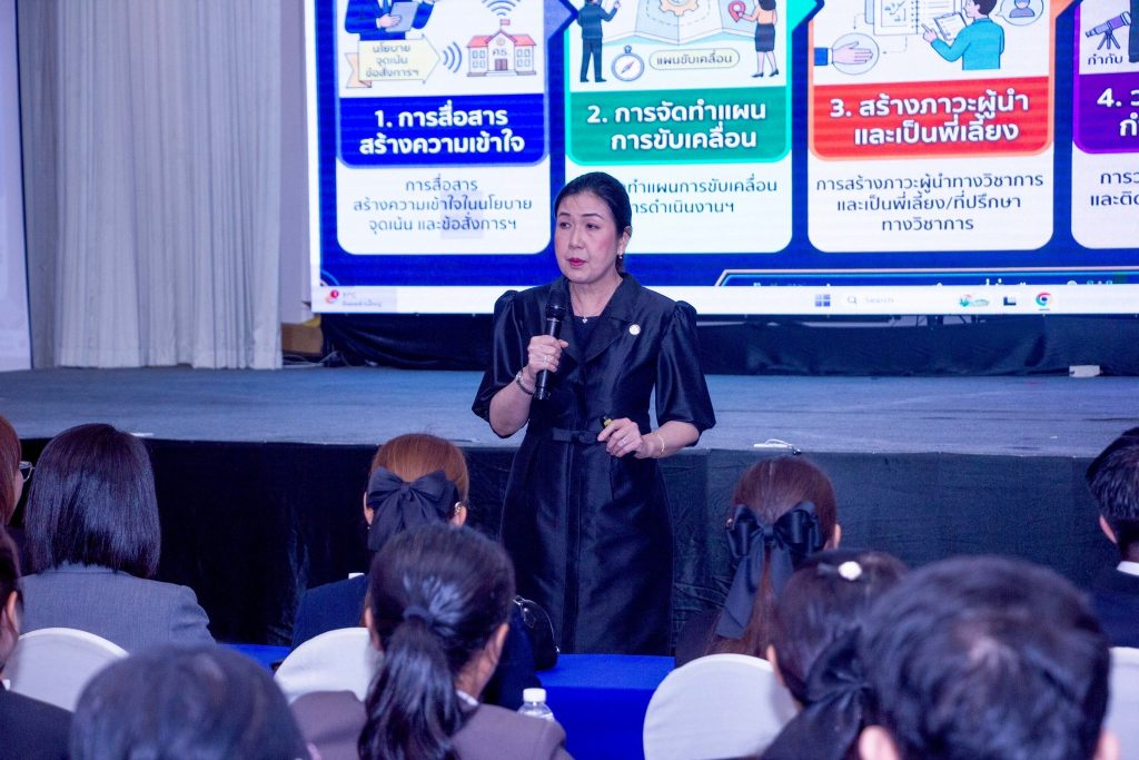 วันที่ 3 เมษายน 2569 นางอาทิตยา ปัญญา ผู้ช่วยเลขาธิการคณะกรรมการการศึกษาขั้นพื้นฐาน ให้เกียรติบรรยายในหัวข้อ ศึกษานิเทศก์กับความหวังของการพัฒนาคุณภาพการศึกษา แก่ผู้เข้ารับการพัฒนา โครงการพัฒนาก่อนแต่งตั้งให้ดำรงตำแหน่งศึกษานิเทศก์ ในสังกัด สพฐ. ประจำปีงบประมาณ พ.ศ. 2569 ณ ห้อง Grand Ball Room โรงแรม เอวาน่า กรุงเทพ โฮเทล แอนด์ คอนเวนชั่น เซ็นเตอร์ กรุงเทพมหานคร