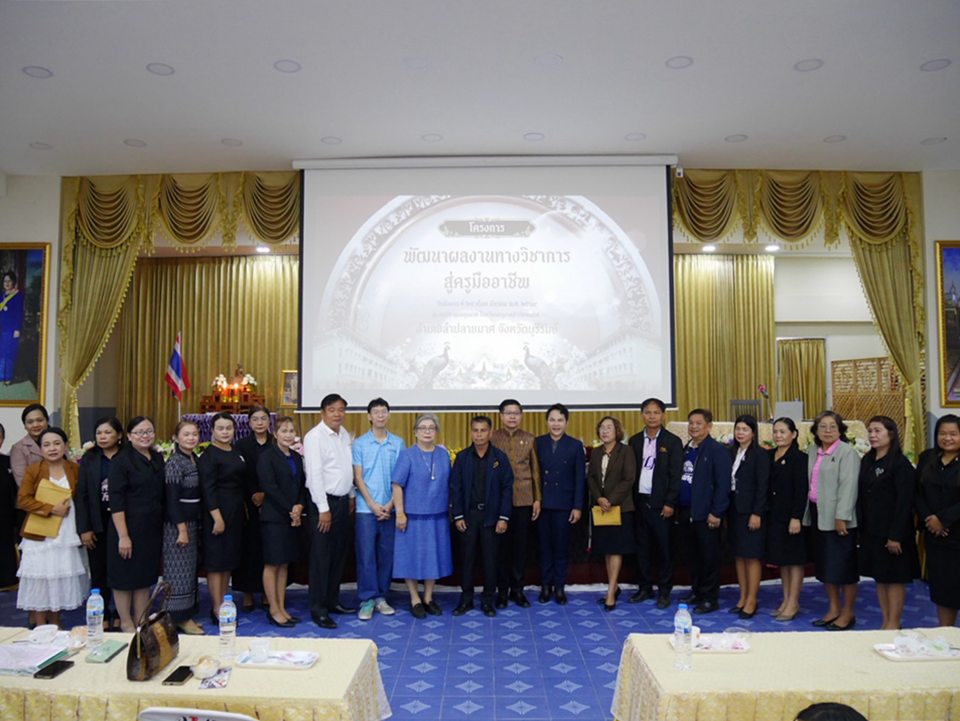 โครงการพัฒนาผลงานทางวิชาการสู่ครูมืออาชีพ จัดโดย สมาคมผู้ประกอบวิชาชีพบริหารการศึกษาอำเภอลำปลายมาศ นำโดย นายศักดิ์ศิริ บุตรเกิ่ง นายกสมาคมผู้ประกอบวิชาชีพบริหารการศึกษาอำเภอลำปลายมาศ ผู้เข้ารับการอบรม เป็นข้าราชการครูและบุคลากรทางการศึกษา สังกัดสำนักงานเขตพื้นที่การศึกษาประถมศึกษาบุรีรัมย์ เขต ๑ จำนวน ๘ กลุ่มโรงเรียน และสังกัดสำนักงานเขตพื้นที่การศึกษามัธยมศึกษาบุรีรัมย์ จำนวน ๑ กลุ่มโรงเรียน และผู้บริหารสถานศึกษาในอำเภอลำปลายมาศ จำนวน ๗๐ คน รวมทั้งสิ้น จำนวน ๒๕๐ คน โครงการนี้มุ่งเน้นการยกระดับขีดความสามารถของข้าราชการครูและบุคลากรทางการศึกษาในอำเภอลำปลายมาศ ให้มีความรู้ความเข้าใจที่ถูกต้องในการจัดทำผลงานทางวิชาการ เพื่อขอมีหรือเลื่อนวิทยฐานะที่สูงขึ้น โดยมุ่งหวังให้ครูสามารถวิเคราะห์และแก้ปัญหาการจัดการเรียนรู้ผ่านกระบวนการวิจัยและนวัตกรรมที่มีคุณภาพ ซึ่งจะส่งผลโดยตรงต่อการพัฒนาผลสัมฤทธิ์ทางการเรียนของผู้เรียน นอกจากนี้ โครงการยังมุ่งสร้างเครือข่ายความร่วมมือทางวิชาการและการแลกเปลี่ยนเรียนรู้ร่วมกัน (PLC) เพื่อกระตุ้นให้เกิดบรรยากาศการพัฒนาตนเองอย่างต่อเนื่อง ส่งเสริมให้ครูมีความก้าวหน้าในเส้นทางวิชาชีพอย่างมีเกียรติและภาคภูมิใจ อันเป็นรากฐานสำคัญในการขับเคลื่อนคุณภาพการศึกษาของกลุ่มโรงเรียนในอำเภอลำปลายอย่างยั่งยืน (ภูเบศ ภูแช่มโชติ : ภาพ)