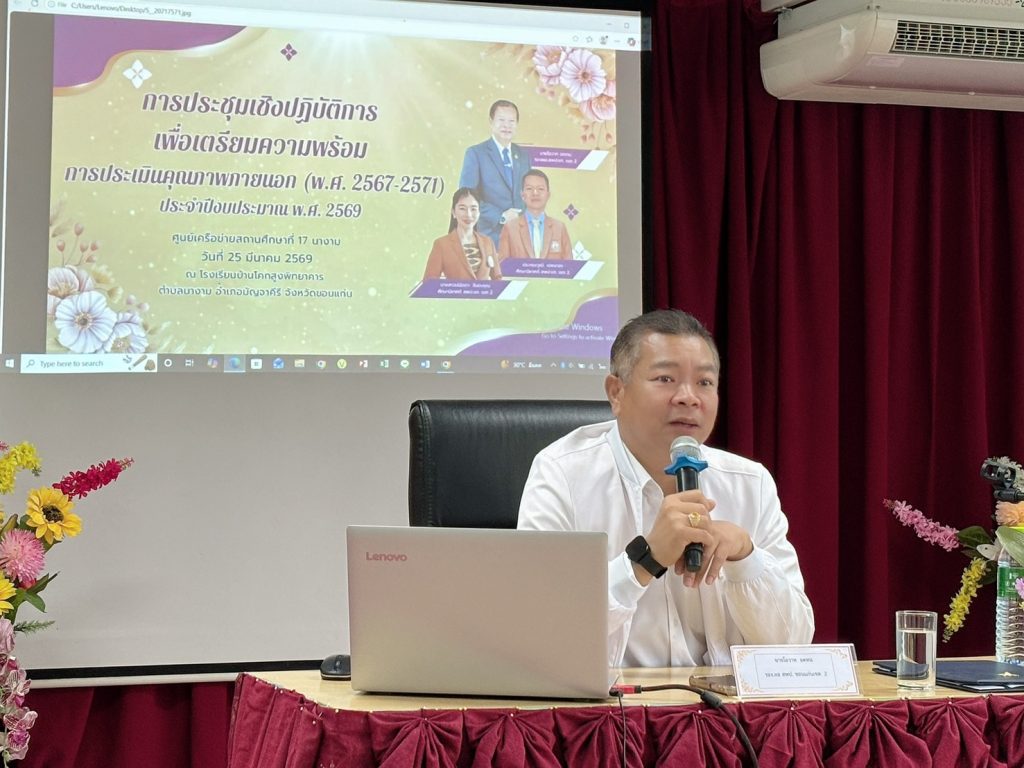(25 มีนาคม 2569) นายอภิชัย เสนาโยธี ผู้อำนวยการสำนักงานเขตพื้นที่การศึกษาประถมศึกษาขอนแก่น เขต 2 (ผอ.สพป.ขอนแก่น เขต 2) มอบหมายให้ นายโอวาท อดทน รอง ผอ.สพป.ขอนแก่น เขต 2 เป็นประธานในพิธีเปิดจัดการประชุมเชิงปฏิบัติการ เพื่อเตรียมความพร้อมการประเมินคุณภาพภายนอก (พ.ศ. 2567-2571) ประจำปีงบประมาณ พ.ศ. 2569 ศูนย์เครือข่ายสถานศึกษาที่ 17 นางาม โดยมี นางสาวปนัดดา จันตะคุณ ศึกษานิเทศก์ชำนาญการพิเศษ นายทรงวุฒิ เดชมาลา ศึกษานิเทศก์ชำนาญการ สพป.ขอนแก่น เขต 2 คณะผู้บริหารสถานศึกษา ศูนย์เครือข่ายสถานศึกษาที่ 17 นางามและครู เข้าร่วมในพิธิเปิด ณ โรงเรียนบ้านโคกสูงพิทยาคาร ตำบลนางาม อำเภอมัญจาคีรี จังหวัดขอนแก่น