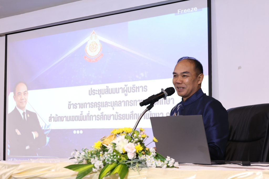 วันที่ 7 เมษายน 2569 ว่าที่ร้อยตรีปัญจมาสน์ มาศนพคุณรัตน์ ผู้อำนวยการสำนักงานเขตพื้นที่การศึกษามัธยมศึกษาพังงา ภูเก็ต ระนอง ประชุมผู้บริหารการศึกษา ผู้บริหารสถานศึกษา และบุคลากรทางการศึกษา เพื่อมอบนโยบายและแนวทางการปฏิบัติงาน เนื่องในโอกาสเข้ารับตำแหน่งใหม่ ณ ห้องประชุมพิงกัน โรงแรมภูงา อำเภอเมือง จังหวัดพังงา