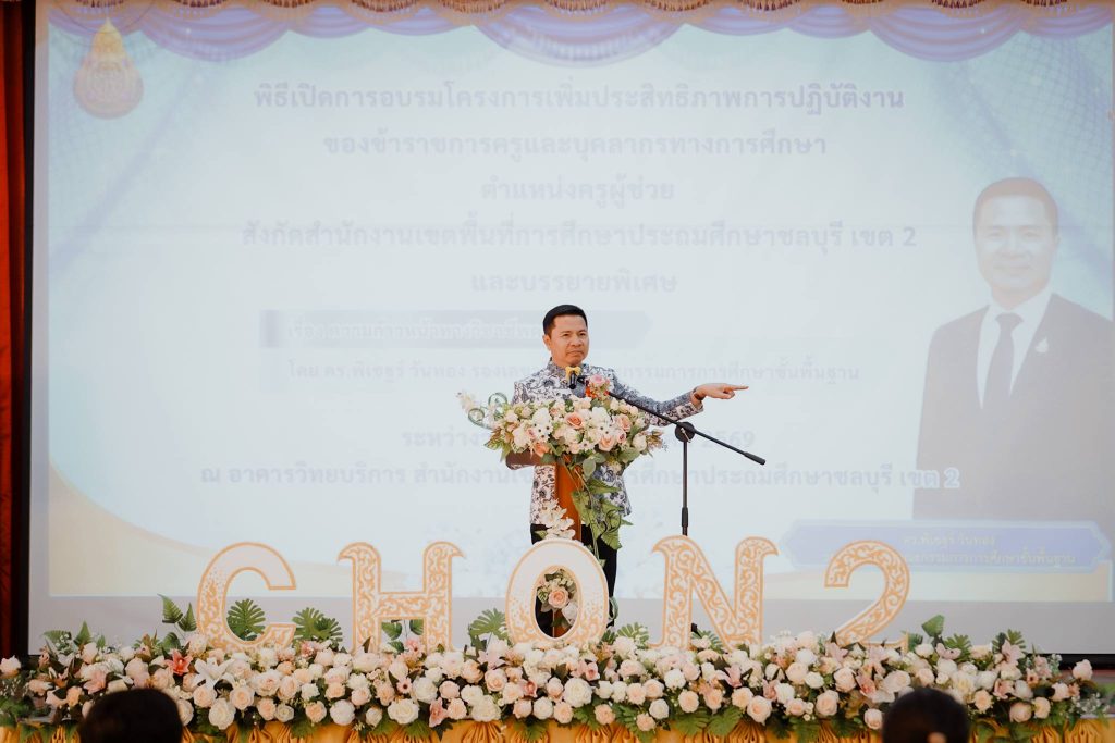 ทั้งนี้ สำนักงานเขตพื้นที่การศึกษาประถมศึกษาชลบุรี เขต 2 มีความมุ่งมั่นในการพัฒนาครูและบุคลากรทางการศึกษาอย่างต่อเนื่อง เพื่อยกระดับคุณภาพการจัดการเรียนรู้ให้สอดคล้องกับการเปลี่ยนแปลงของสังคม และตอบสนองต่อความต้องการของผู้เรียนในศตวรรษที่ 21 โดยการอบรมครั้งนี้นับเป็นเวทีสำคัญที่เปิดโอกาสให้ผู้เข้ารับการอบรมได้แลกเปลี่ยนเรียนรู้ เพิ่มพูนประสบการณ์ และพัฒนาตนเองสู่ความเป็นครูมืออาชีพอย่างแท้จริง