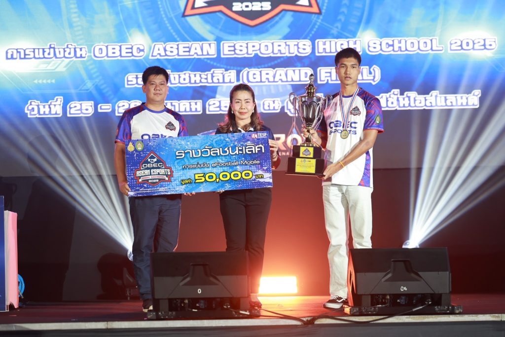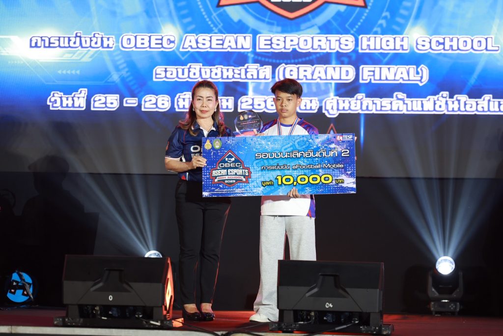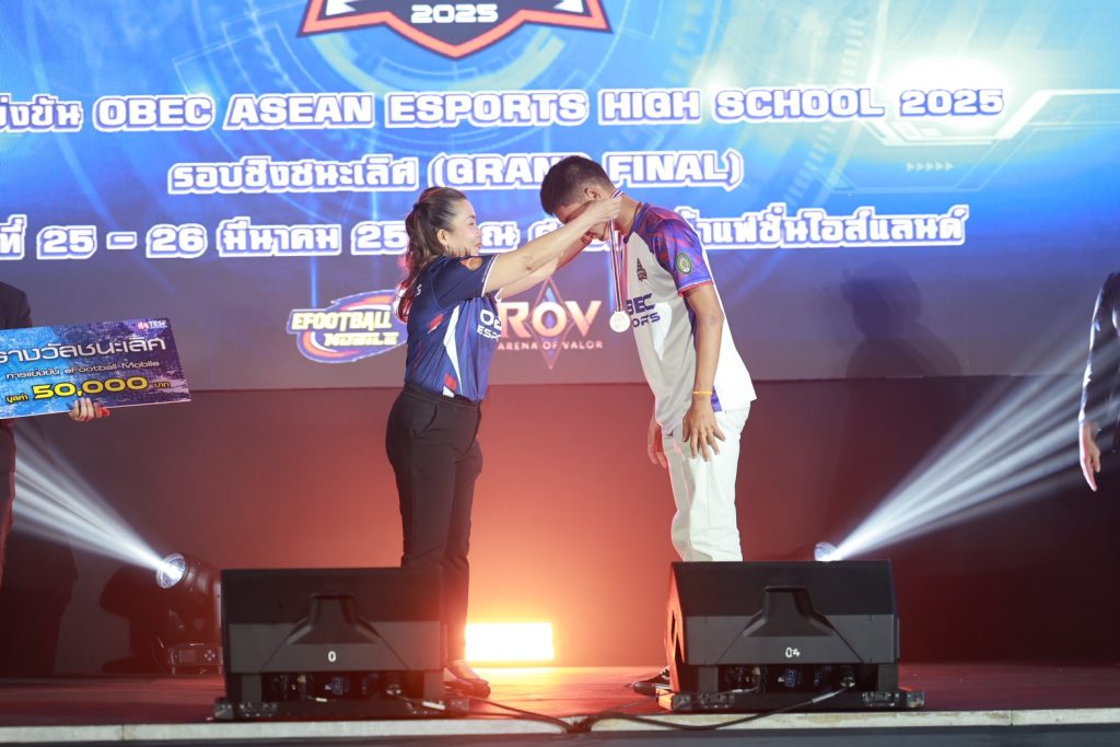 ในโอกาสนี้ ประธานในพิธีได้มอบรางวัลแก่ผู้ชนะการแข่งขัน พร้อมแสดงความยินดีกับนักกีฬาที่ได้รับรางวัล และชื่นชมนักกีฬาทุกทีมที่เข้าร่วมการแข่งขัน ก่อนประกาศปิดการแข่งขัน OBEC ASEAN ESPORTS HIGH SCHOOL 2025 อย่างเป็นทางการ ท่ามกลางบรรยากาศแห่งความสำเร็จและความภาคภูมิใจของทุกภาคส่วนที่ร่วมกันขับเคลื่อนกิจกรรมในครั้งนี้