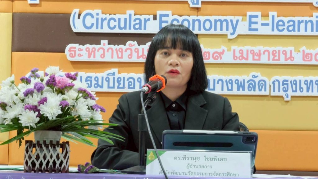 ดร. พีรานุช ไชยพิเดช ผู้อำนวยการสำนักพัฒนานวัตกรรมการจัดการศึกษา กล่าวว่า “แนวคิดเศรษฐกิจหมุนเวียนนับเป็นแนวทางสำคัญในการพัฒนาที่ยั่งยืน มุ่งเน้นการใช้ทรัพยากรอย่างคุ้มค่า ลดของเสีย และสร้างคุณค่าให้กับทรัพยากรที่มีอยู่ สอดคล้องกับทิศทางการพัฒนาประเทศ และการจัดการศึกษาที่มุ่งสร้างผู้เรียนให้มีความรู้ ทักษะ และจิตสำนึกด้านสิ่งแวดล้อม”