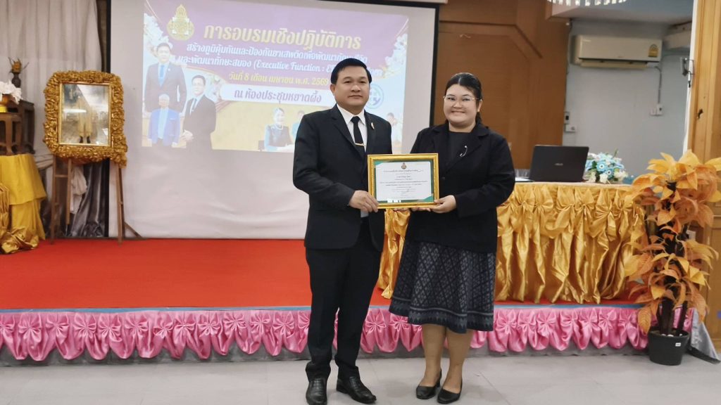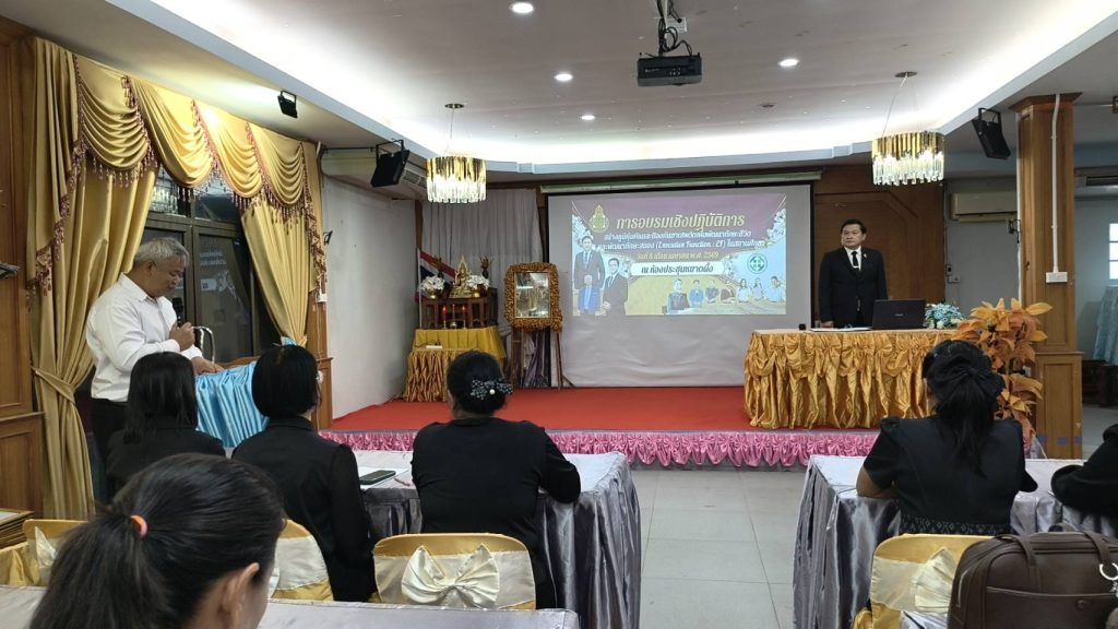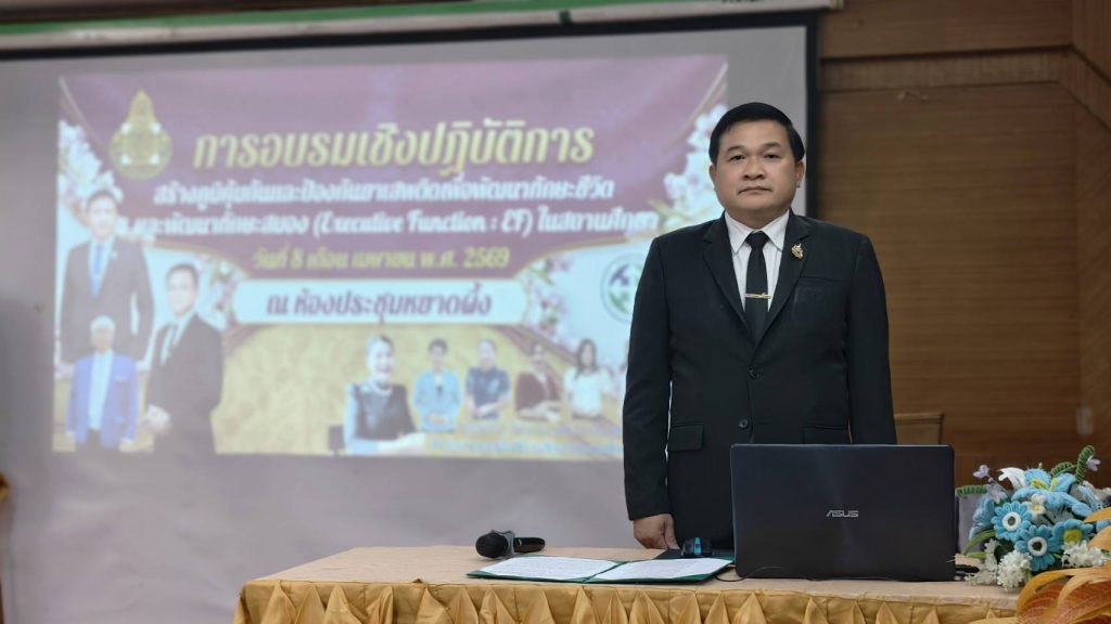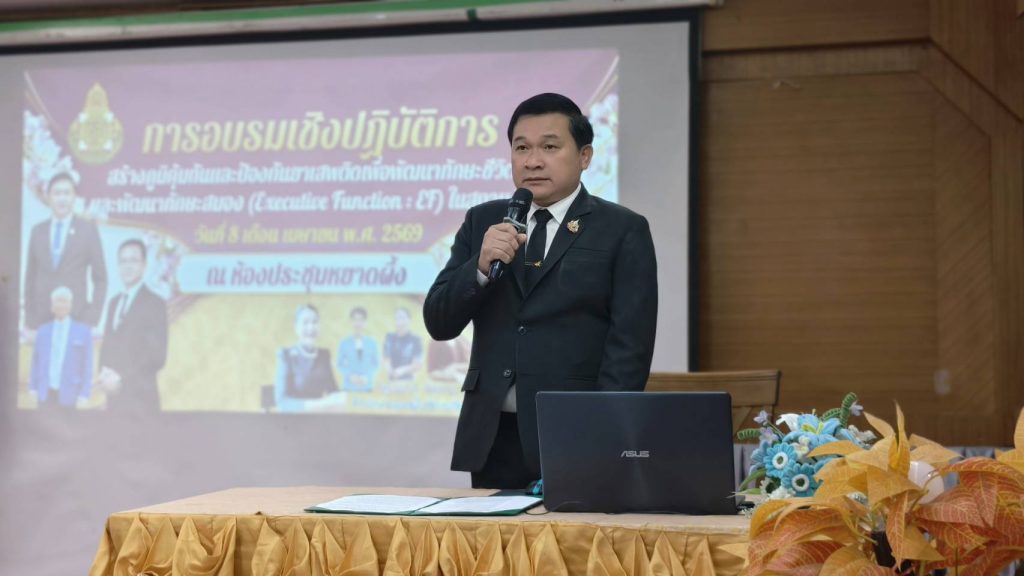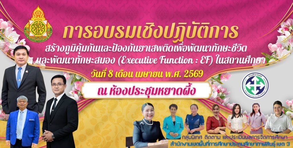 วันพุธที่ 8 เมษายน 2569 เวลา 08.30 น. นายภมร หลอดแพง ผอ. สพป.กาฬสินธุ์ เขต 3 เป็นประธานในพิธีเปิดการอบรมเชิงปฏิบัติการโครงการเสริมสร้างศักยภาพครูเพื่อการพัฒนาทักษะทางสมอง (Executive Function : EF) ในการป้องกันและแก้ปัญหายาเสพติดในสถานศึกษา ประจำปีงบประมาณ พ.ศ. 2569 โดยมี นายเสกสรรค์ มีสารพันธ์ ผอ.กลุ่มนิเทศ ติดตาม และประเมินผลการจัดการศึกษา เป็นผู้กล่าวรายงาน พร้อมด้วย ศึกษานิเทศก์ คณะครู และบุคลากรที่เกี่ยวข้อง เพื่อขับเคลื่อนการสร้างภูมิคุ้มกันและป้องกันยาเสพติดเพื่อพัฒนาทักษะชีวิตและพัฒนาทักษะสมอง (Executive Function : EF) สู่การปฏิบัติ ณ ห้องประชุมหยาดผึ้ง สพป.กาฬสินธุ์ เขต 3