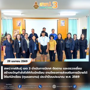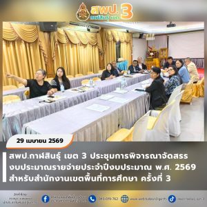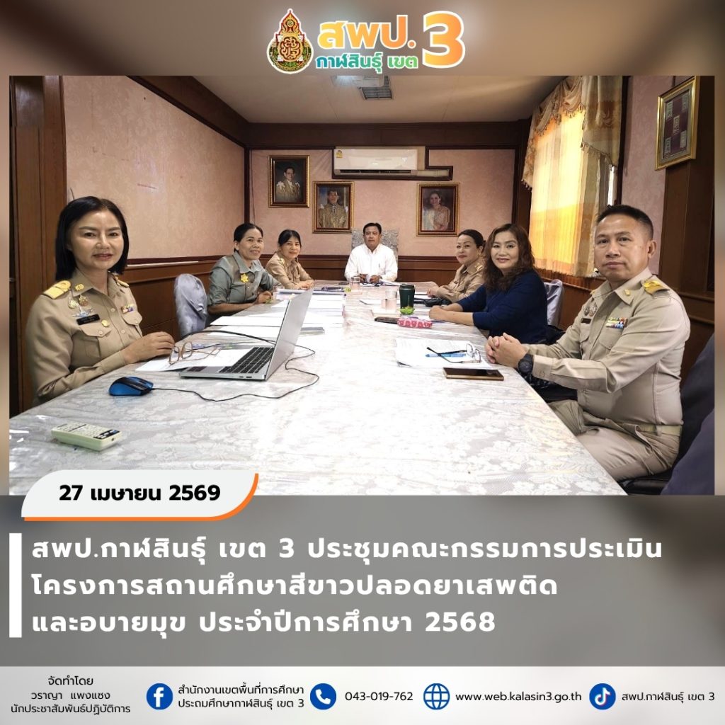 วันจันทร์ที่ 27 เมษายน 2569 เวลา 09.00 น. นายภมร หลอดแพง ผอ. สพป.กาฬสินธุ์ เขต 3 มอบหมายให้ นายมนตรี จันทวงศ์ รอง ผอ. สพป.กาฬสินธุ์ เขต 3 เป็นประธานประชุมคณะกรรมการประเมินโครงการสถานศึกษาสีขาวปลอดยาเสพติดและอบายมุข ประจำปีการศึกษา 2568 สำหรับสถานศึกษาที่มีความพร้อม เพื่อขอรับการประเมินจากคณะกรรมการประเมินระดับหน่วยงานต้นสังกัดของสถานศึกษา การประเมินระดับจังหวัด และการประเมินระดับกระทรวง สำหรับการดำเนินการในปีการศึกษา 2568 นี้ สถานศึกษาที่ผ่านเกณฑ์การประเมินในแต่ละระดับ ตามที่กำหนด สถานศึกษาจะได้รับการประกาศเป็น “สถานศึกษาสีขาว ปลอดยาเสพติดและอบายมุขดีเด่น” ระดับเงิน ระดับทอง ระดับเพชร และรักษามาตรฐานระดับเพชรปีที่ 1 ปีที่ 2 และปีที่ 3 ตามลำดับ พร้อมจัดทำทะเบียนข้อมูลสถานศึกษาสีขาวฯ ของหน่วยงานต่อไป ณ ห้องประชุมหยาดเพชร สพป.กาฬสินธุ์ เขต 3