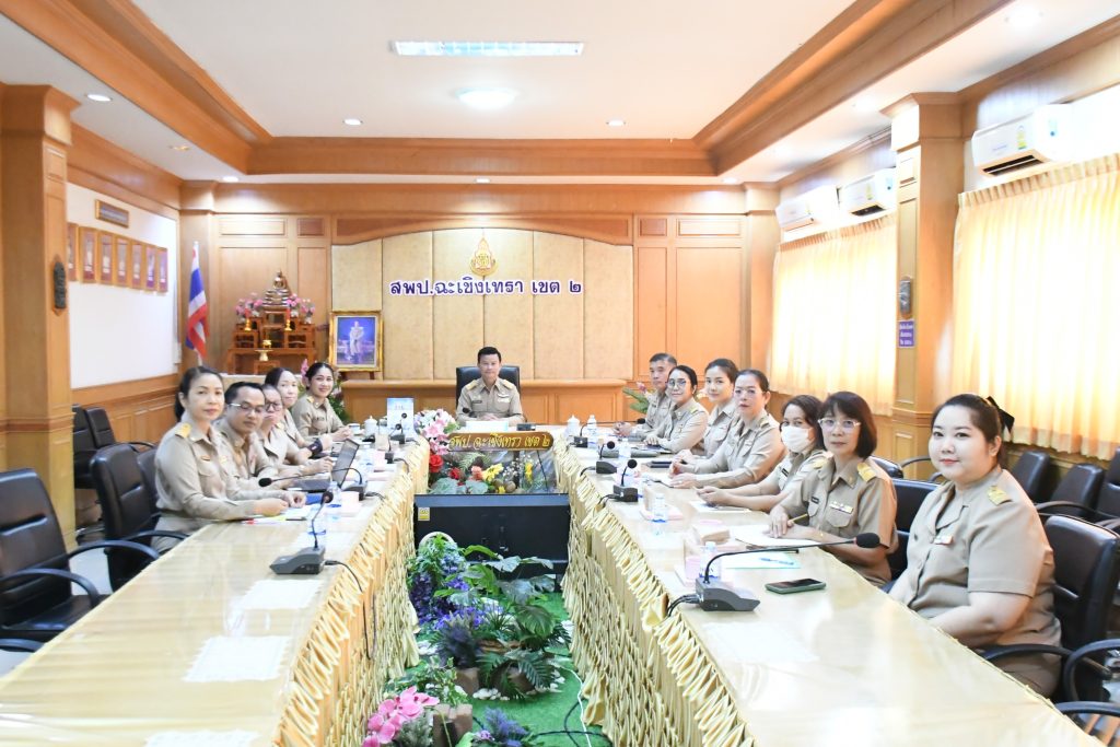นายนิติศาสตร์ พรมแสงใส ผู้อำนวยการสำนักงานเขตพื้นที่การศึกษาประถมศึกษาฉะเชิงเทรา เขต 2 พร้อมด้วย นายพิพัฒน์ พัฒนะพุฒิเลิศ รอง ผอ.สพป.ฉะเชิงเทรา เขต 2, ดร.ขวัญศิริ บุญสรรค์ รอง ผอ.สพป.ฉะเชิงเทรา เขต 2, ผู้อำนวยการกลุ่ม/หน่วย และบุคลากรที่เกี่ยวข้อง เข้าร่วม การประชุมชี้แจงแนวทางลดภาระงานครูของสำนักงานคณะกรรมการการศึกษาขั้นพื้นฐาน (สพฐ.) ประจำปีงบประมาณ พ.ศ. 2569 ภายใต้นโยบายระยะเร่งด่วน (Quick Win) ผ่านระบบออนไลน์ ณ ห้องประชุมพุทธโสธร สพป.ฉะเชิงเทรา เขต 2