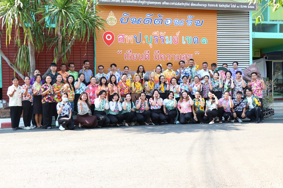 วันพฤหัสบดีที่ ๙ เมษายน ๒๕๖๙ สพป.บุรีรัมย์ เขต ๑ นำโดย ดร.กัญจนา สัตตรัตนำพร ผอ.สพป.บุรีรัมย์ เขต ๑ นายอรรถพล ชาติรัมย์ นายสุพรมแดน ประทุมเมศ นางสาวพรทิพย์ ทวีวัฒน์โสภา รอง ผอ.สพป.บุรีรัมย์ เขต ๑ พร้อมคณะผู้บริหาร ข้าราชการครูและบุคลากรทางการศึกษาในสังกัดสำนักงานเขตพื้นที่การศึกษาประถมศึกษาบุรีรัมย์ เขต ๑ จัดกิจกรรมวันสงกรานต์สืบสานประเพณีไทย ประจำปี ๒๕๖๙ ณ หอประชุมพิมานพรหม สพป.บุรีรัมย์ เขต ๑ เพื่อแสดงออกถึงความกตัญญูกตเวทีต่อผู้มีพระคุณ ผู้บังคับบัญชา สืบสานและอนุรักษ์วัฒนธรรมประเพณีอันดีงาม สร้างเสริมความความรัก ความสามัคคีของบุคลากรในหน่วยงาน และสร้างขวัญกำลังใจในการปฏิบัติงาน โดยใช้โอกาสวาระดิถีขึ้นปีใหม่ไทยในการสร้างบรรยากาศการทำงานที่ผ่อนคลายและมีความสุข โดยมี นายณรงค์ แผ้วพลสง อดีตเลขาธิการคณะกรรมการอาชีวศึกษา เป็นประธานฯ