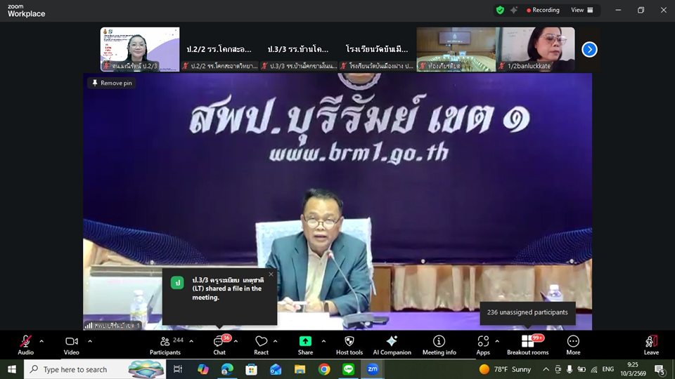 วันอังคารที่ ๑๐ มีนาคม ๒๕๖๙ นายอรรถพล ชาติรัมย์ รอง ผอ.สพป.บุรีรัมย์ เขต ๑ รักษาราชการแทน ผอ.สพป.บุรีรัมย์ เขต ๑ เป็นประธานเปิดการนิเทศ ติดตามและประเมินผลการจัดกิจกรรมการเรียนรู้ ตามแนวทางโครงการบ้านนักวิทยาศาสตร์น้อยประเทศไทยระดับประถมศึกษา ของครูผู้สอนชั้นประถมศึกษาปีที่ ๑-๓ โดยใช้ชุมชนแห่งการเรียนรู้ทางวิชาชีพ (PLC) ผ่านระบบ Zoom Meeting ณ ห้องประชุมเลี้ยงผ่องพันธุ์ สพป.บุรีรัมย์ เขต ๑ โดยมี นางจุติมาพร เชียงกา ศึกษานิเทศผู้รับผิดชอบโครงการบ้านนักวิทยาศาสตร์น้อยประเทศไทย ชี้แจงขั้นตอนการดำเนินการนิเทศติดตามฯ ผลที่คาดว่าจะได้รับจากกระบวนการนี้ ครูเกิดความมั่นใจในการสอนวิทยาศาสตร์ และมีเทคนิคใหม่ๆ จากการแลกเปลี่ยนในกลุ่ม PLC , นักเรียนได้รับประสบการณ์การเรียนรู้ที่สนุกสนาน มีทักษะการคิดวิเคราะห์ และกล้าตั้งคำถามตามวัย และโรงเรียนที่เข้าร่วมโครงการมีฐานข้อมูลผลการดำเนินงานที่เป็นระบบ พร้อมสำหรับการรับการประเมินตราพระราชทานในระดับที่สูงขึ้น