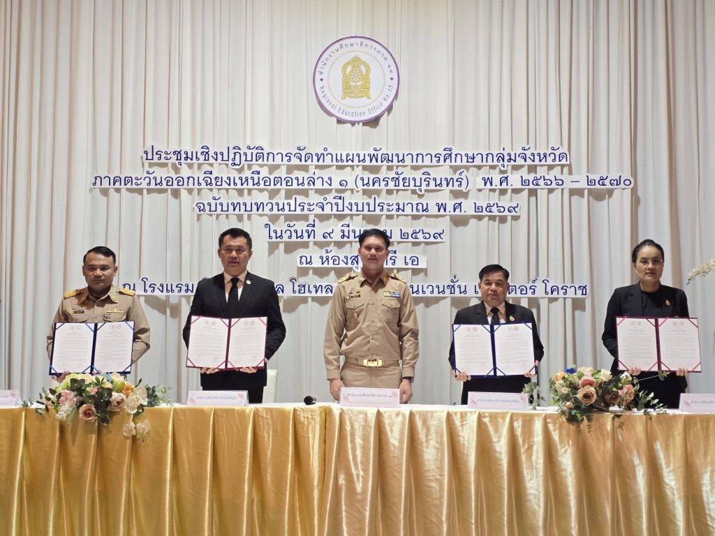 วันจันทร์ที่ ๙ มีนาคม ๒๕๖๙ นายอรรถพล ชาติรัมย์ รอง ผอ.สพป.บุรีรัมย์ เขต ๑ รักษาราชการแทน ผอ.สพป.บุรีรัมย์ เขต ๑ มอบหมายให้ นายสุพรมแดน ประทุมเมศรอง ผอ.สพป.บุรีรัมย์ เขต ๑ ร่วมประชุมเชิงปฏิบัติการจัดทำแผนพัฒนาการศึกษากลุ่มจังหวัด ภาคตะวันออกเฉียงเหนือตอนล่าง ๑ (นครชัยบุรินทร์) พ.ศ. ๒๕๖๖ – ๒๕๗๐ ฉบับทบทวน ประจำปีงบประมาณ พ.ศ. ๒๕๖๙ ภายใต้โครงการขับเคลื่อนยุทธศาสตร์การพัฒนาการศึกษาสู่การปฏิบัติระดับภาค เพื่อร่วมทบทวนและจัดทำแผนพัฒนาการศึกษากลุ่มจังหวัด ภาคตะวันออกเฉียงเหนือตอนล่าง ๑ (นครชัยบุรินทร์) พ.ศ. ๒๕๖๖ – ๒๕๗๐ ฉบับทบทวน ประจำปีงบประมาณ พ.ศ. ๒๕๖๙ ให้มีความทันสมัยและสอดคล้องกับสถานการณ์ในปัจจุบันที่เปลี่ยนแปลงไปอย่างรวดเร็ว โดยมุ่งเน้นการวิเคราะห์ผลการดำเนินงานในรอบปีที่ผ่านมา เพื่อหาจุดแข็งและข้อจำกัด นำมากำหนดกลยุทธ์และเป้าหมายใหม่เพื่อตอบโจทย์การพัฒนาการศึกษาของกลุ่มจังหวัด (นครชัยบุรินทร์) อย่างแท้จริง ณ โรงแรม ดิ อิมพีเรียล โฮเทล แอนด์ คอนเวนชั่น เซ็นเตอร์ โคราช อำเภอเมืองนครราชสีมา จังหวัดนครราชสีมา โดยมี นายสัมมนาการณ์ บุญเรือง รองศึกษาธิการภาค ๑๓ รักษาการในตำแหน่ง ศึกษาธิการภาค ๑๓ เป็นประธานฯ