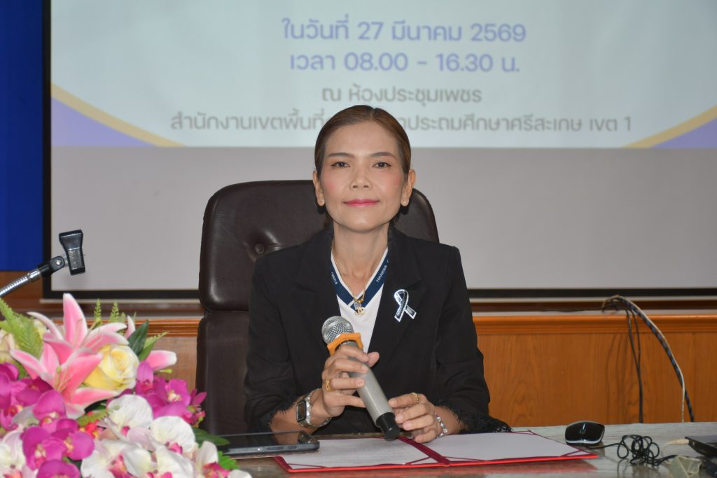 วันที่ 27 มีนาคม 2569 เวลา 09.00 น. ณ ห้องประชุมเพชร สำนักงานเขตพื้นที่การศึกษาประถมศึกษาศรีสะเกษ เขต 1 นายลิขิต เพ็งประสิทธิพงศ์ ผู้อำนวยการสำนักงานเขตพื้นที่การศึกษาประถมศึกษาศรีสะเกษ เขต 1 มอบหมายให้ นางสาวธรรศญา หล่าอุดม รองผู้อำนวยการสำนักงานเขตพื้นที่การศึกษาประถมศึกษาศรีสะเกษ เขต 1 เป็นประธานเปิดโครงการสถานศึกษาสีขาว ปลอดยาเสพติดและอบายมุข ปีการศึกษา 2568 โดยกระทรวงศึกษาธิการ มีนโยบายให้สถานศึกษาในสังกัด ดำเนินงานโครงการสถานศึกษาสีขาว ปลอดยาเสพติดและอบายมุข เป็นโครงการหลักในการขับเคลื่อนการสร้างภูมิคุ้มกันยาเสพติดในสถานศึกษา โดยได้กำหนดหลักเกณฑ์  ขั้นตอนการประเมินให้แก่สถานศึกษาที่มีความพร้อม เพื่อขอรับการประเมินจากคณะกรรมการระดับหน่วยงานต้นสังกัดของสถานศึกษา ระดับจังหวัด และระดับกระทรวง ซึ่งในปีการศึกษา 2568 สถานศึกษาที่ผ่านเกณฑ์การประเมินในแต่ละระดับ จะได้รับการประกาศเป็น “สถานศึกษาสีขาว ปลอดยาเสพติดและอบายมุขดีเด่น” ตลอดจนได้รับเกียรติบัตรและโล่รางวัลเชิดชูเกียรติจากรัฐมนตรีว่าการกระทรวงศึกษาธิการ กลุ่มเป้าหมายในการเข้ารับการอบรมในครั้งนี้ เป็นครูผู้รับผิดชอบโครงการสถานศึกษาสีขาว ปลอดยาเสพติดและอบายมุข ระดับเงิน ระดับทอง ระดับเพชร ระดับรักษามาตรฐาน ระดับเพชรปีที่ 1 และปีที่ 2 จำนวน 123 คน วิทยากรได้รับความอนุเคราะห์จากครูผู้รับผิดชอบที่ผ่านเกณฑ์การประเมินระดับเพชร และรักษามาตรฐานระดับเพชร ปีที่ 1 เมื่อปีการศึกษา 2567 โดยมี นางพิฐชญาณ์ แฟงคล้ายวรกิตต์ นักวิชาการศึกษาชำนาญการ เป็นผู้กล่าวรายงาน และมี นางนวพร ทองสมบัติ ผู้อำนวยการกลุ่มส่งเสริมการจัดการศึกษา พร้อมด้วย บุคลากรกลุ่มส่งเสริมการจัดการศึกษา ให้การต้อนรับ และร่วมพิธีเปิดในครั้งนี้////// ปาริชาติ อาจสำแดง ภาพ / ข่าว