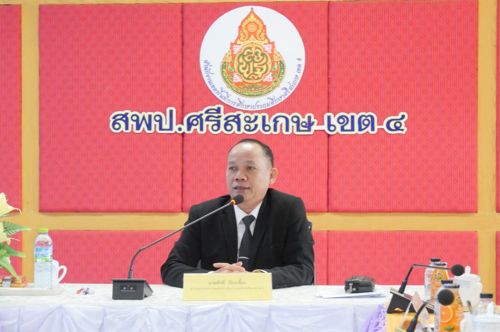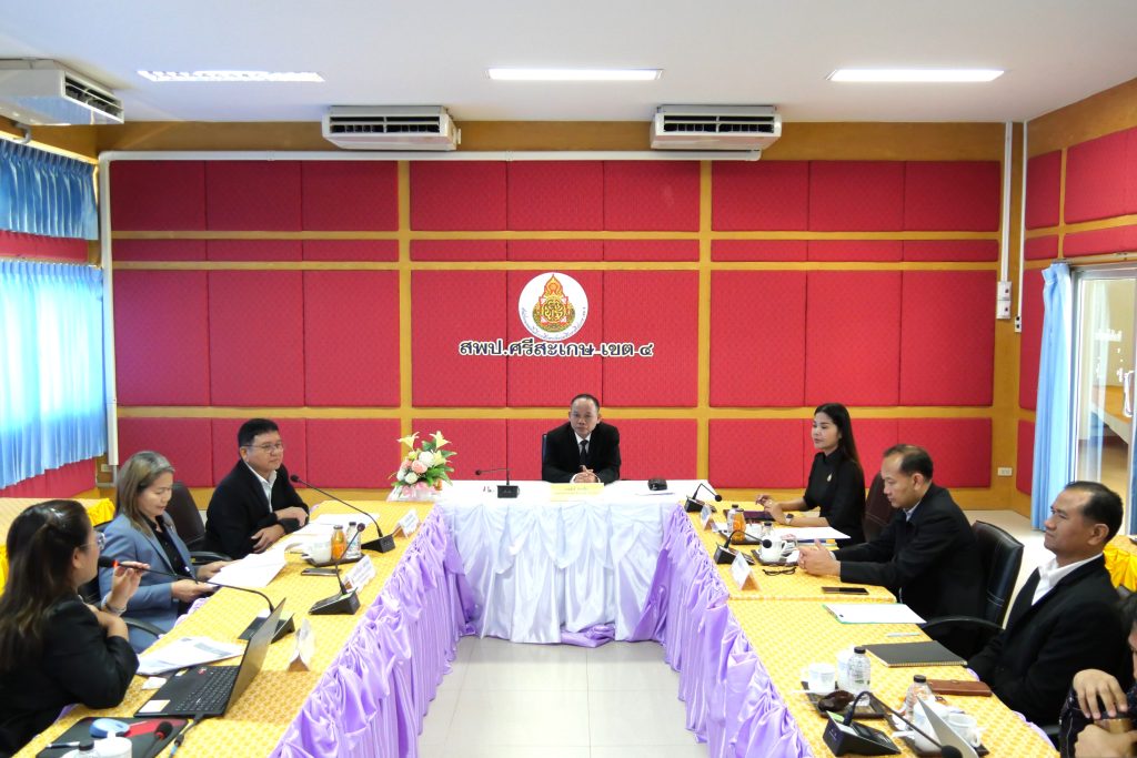 วันที่ 12 มีนาคม 2569 นายศักดิ์ ภักเกลี้ยง ผู้อำนวยการสำนักงานเขตพื้นที่การศึกษาประถมศึกษาศรีสะเกษ เขต 4 กล่าวพบปะและให้กำลังใจในการประเมินสัมฤทธิผลการปฏิบัติงานในหน้าที่ตำแหน่งศึกษานิเทศก์ ในระยะเวลา 1 ปี (รอบที่ 2) นางชุตินันท์ ก้อนทอง ศึกษานิเทศก์ สพป.ศรีสะเกษ เขต 4 พร้อมมอบแนวทางการดำเนินงาน โดยมี นางสาวนารีรัตน์ เอกศิริ รองผู้อำนวยการสำนักงานเขตพื้นที่การศึกษาประถมศึกษาศรีสะเกษ เขต 4 เป็นประธานคณะกรรมการประเมินฯ พร้อมด้วยคณะกรรมการฯ และผู้เข้าร่วมการประเมินในครั้งนี้ ณ ห้องประชุมมออีแดง อาคาร 1 ชั้น 2 สำนักงานเขตพื้นที่การศึกษาประถมศึกษาศรีสะเกษ เขต 4