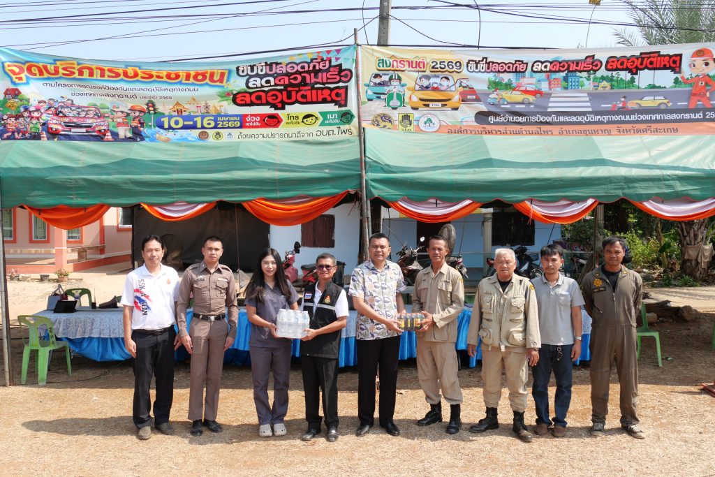 วันที่ 14 เมษายน 2569 นายศักดิ์ ภักเกลี้ยง ผู้อำนวยการสำนักงานเขตพื้นที่การศึกษาประถมศึกษาศรีสะเกษ เขต 4 มอบหมายให้ นายไตรวิชญ์ เนียมมูล รองผู้อำนวยการสำนักงานเขตพื้นที่การศึกษาประถมศึกษาศรีสะเกษ เขต 4 พร้อมด้วย นายพลกฤต บุตรอุดม ผู้อำนวยการกลุ่มอำนวยการ และคณะ ลงพื้นที่ตรวจเยี่ยมจุดตรวจ ตามโครงการรณรงค์ป้องกันและลดอุบัติเหตุทางถนน ในช่วงเทศกาลสงกรานต์ ประจำปี 2569 โซนที่ 5 ณ อำเภอขุนหาญ อำเภอไพรบึง และอำเภอพยุห์ จังหวัดศรีสะเกษ ผลการดำเนินการเป็นไปด้วยความเรียบร้อย เหตุการณ์ทั่วไปปกติ