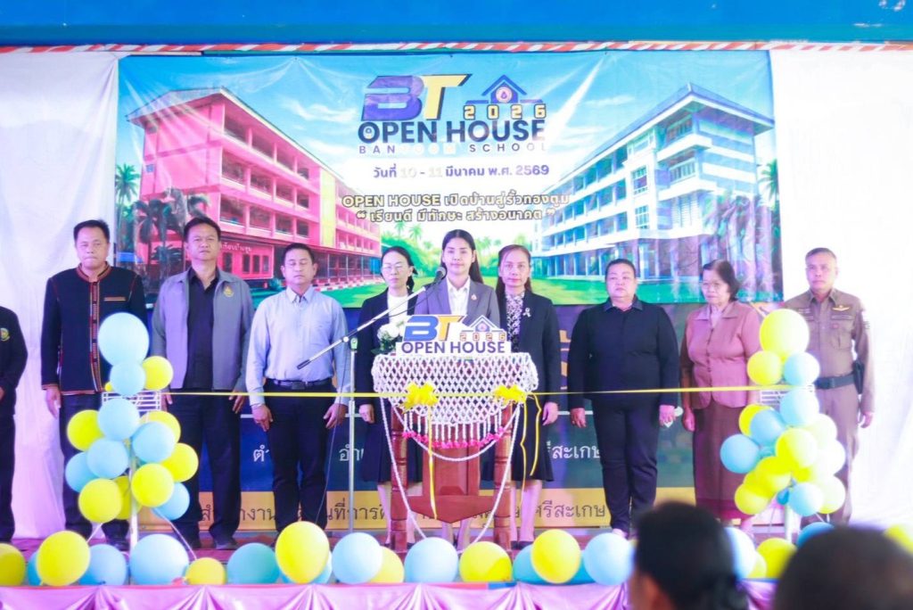 วันที่ 11 มีนาคม 2569 นายศักดิ์ ภักเกลี้ยง ผู้อำนวยการสำนักงานเขตพื้นที่การศึกษาประถมศึกษาศรีสะเกษ เขต 4 มอบหมายให้ นางสาวนารีรัตน์ เอกศิริ รองผู้อำนวยการสำนักงานเขตพื้นที่การศึกษาประถมศึกษาศรีสะเกษ เขต 4 เป็นประธานในพิธีเปิดกิจกรรม OPEN HOUSE เปิดบ้านรั้วทองตูม “เรียนดี มีทักษะ สร้างอนาคต” ปีการศึกษา 2568 ณ อาคารเรียนทองตูมวิทยพัฒน์ โรงเรียนบ้านตูม (นพค.15 กรป.กลางอุปถัมภ์) โดยเป็นการนำเสนอผลงานอันเกิดจากกิจกรรมการเรียนการสอนของครูและนักเรียน ทั้ง 8 กลุ่มสาระการเรียนรู้ กิจกรรมพัฒนาผู้เรียน และชุมนุมต่างๆ ในโรงเรียน อีกทั้งยังเปิดโอกาสให้ผู้ปกครอง ชุมชน และหน่วยงานต่างๆ ได้เข้าเยี่ยมชมแลกเปลี่ยนเรียนรู้ แบ่งปันประสบการณ์และสร้างเครือข่ายแห่งการพัฒนาคุณภาพการศึกษา