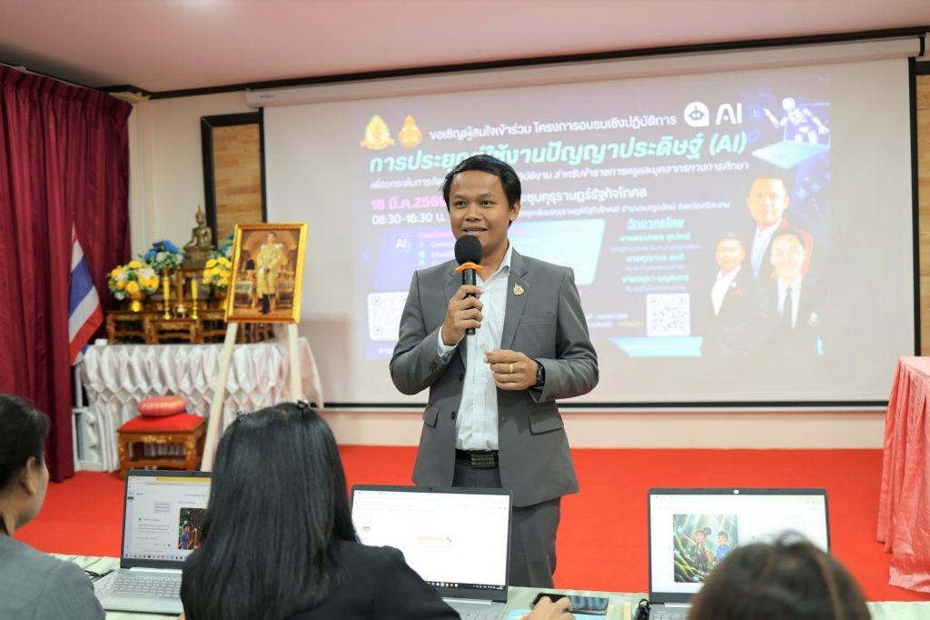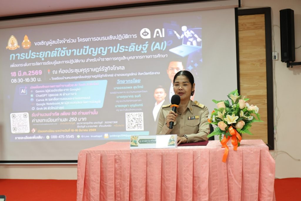 วันที่ 18 มีนาคม 2569 นายศักดิ์ ภักเกลี้ยง ผู้อำนวยการสำนักงานเขตพื้นที่การศึกษาประถมศึกษาศรีสะเกษ เขต 4 มอบหมายให้ นางสาวนารีรัตน์ เอกศิริ รองผู้อำนวยการสำนักงานเขตพื้นที่การศึกษาประถมศึกษาศรีสะเกษ เขต 4 เป็นประธานในพิธีเปิดการอบรมเชิงปฏิบัติการ “การประยุกต์ใช้งานปัญญาประดิษฐ์ (AI)” เพื่อยกระดับการจัดการเรียนรู้และการปฏิบัติงาน สำหรับข้าราชการครูและบุคลากรทางการศึกษา ณ ห้องประชุมโรงเรียนบ้านหนองงูเหลือม (คุรุราษฎร์รัฐกิจโกศล) อำเภอเบญจลักษ์ จังหวัดศรีสะเกษ โดยมีคณะวิทยากรผู้เชี่ยวชาญ 3 ท่าน ได้แก่ นายอรรถพล สุรวิทย์ รองผู้อำนวยการสถานศึกษา รักษาการในตำแหน่งผู้อำนวยการโรงเรียนบ้านหนองงูเหลือม (คุรุราษฎร์รัฐกิจโกศล) นายอนุชา บุญรินทร์ ครูโรงเรียนบ้านโนนไหล่หนองเลิง และนายคุณากร ธนที ครูโรงเรียนบ้านจันทน์หอมตาเสก และผู้สนใจเข้าร่วมการอบรมในครั้งนี้ จำนวน 70 คน จัดขึ้นเพื่อส่งเสริมให้ครูและบุคลากรทางการศึกษาสามารถนำเทคโนโลยี AI มาช่วยเพิ่มประสิทธิภาพในการทำงาน “ช่วยลดภาระครู“