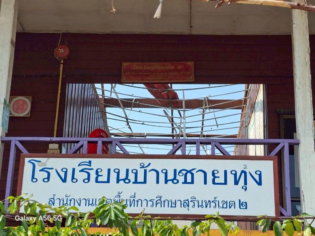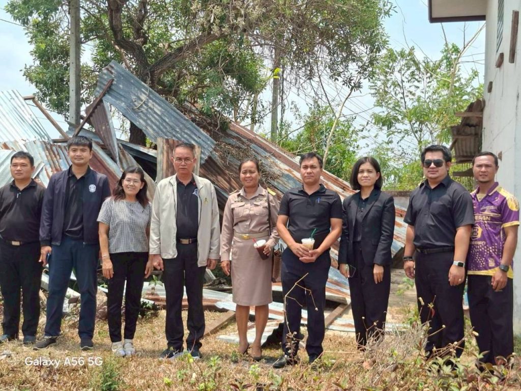 วันที่ 20 เมษายน 2569 นายสิทธิพร ผมงาม ผู้อำนวยการสำนักงานเขตพื้นที่การศึกษาประถมศึกษาสุรินทร์ เขต 2 ได้มอบหมายให้ นายพชรพล จ่าพุลี รองผู้อำนวยการสำนักงานเขตพื้นที่การศึกษาประถมศึกษาสุรินทร์ เขต 2 พร้อมด้วย นางสาวสุกัญญา มาลีหวล ผู้อำนวยการกลุ่มนโยบายและแผน และคณะกรรมการติดตามตรวจสอบสภาพอาคารเรียน ลงพื้นที่ตรวจสอบความเสียหายของอาคารเรียนและอาคารประกอบที่ได้รับผลกระทบจากเหตุวาตภัยในเขตพื้นที่รับผิดชอบ
