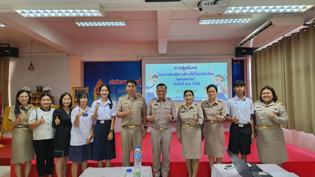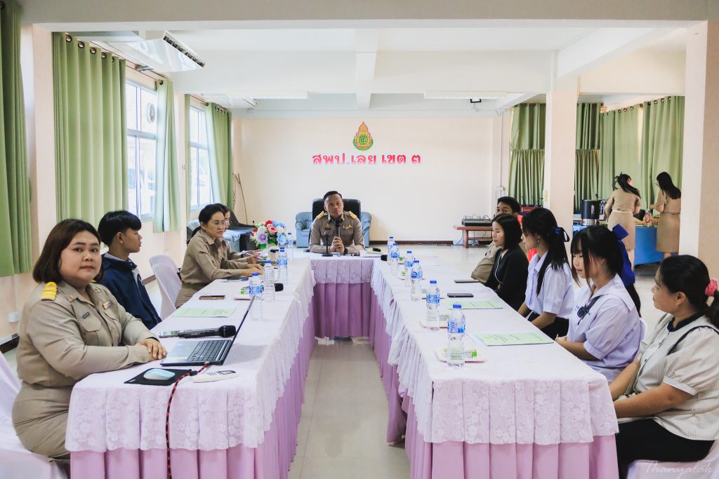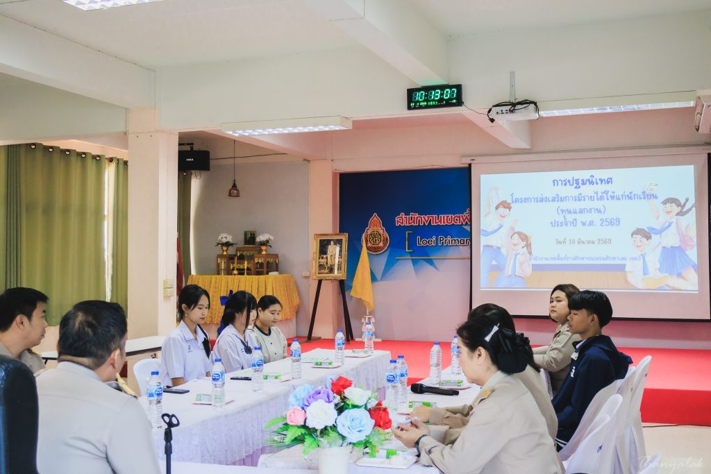 วันที่ 23 มีนาคม 2569 เวลา 10.00 น. นางสรัญญา บุดดา ผอ.สพป.เลย เขต 3 มอบหมายให้นายประชา ไชยศรี รอง ผอ.สพป.เลย เขต 3 เป็นประธานการปฐมนิเทศนักเรียนในโครงการส่งเสริมการมีรายได้แก่นักเรียน (ทุนแลกงาน) ประจำปี พ.ศ.2569 พร้อมด้วยนายเริงฤทธิ์ คำหมู่ ผอ.กลุ่มส่งเสริมการจัดการศึกษา,นางเพชรี ชัยมูล ผอ.กลุ่มนิเทศฯ ,นางพิสมัย ทองหล้า ผอ.กลุ่มอำนวยการ และบุคลากรที่เกี่ยวข้อง เข้าร่วม ณ ห้องประชุมภูลมโล สพป.เลย เขต 3