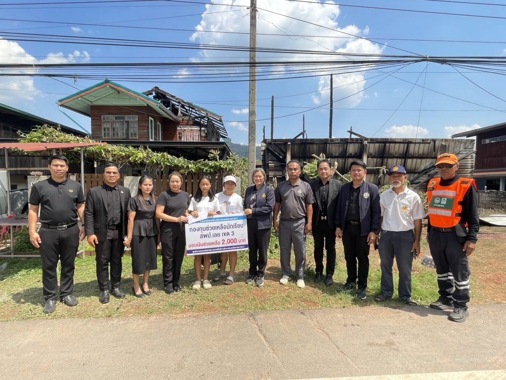 ในการนี้ สพป.เลย เขต 3 ได้มอบเงินช่วยเหลือจากกองทุนช่วยเหลือนักเรียน สพป.เลย เขต 3 ครอบครัวละ 2,000 บาท เพื่อบรรเทาความเดือดร้อนเบื้องต้น พร้อมทั้งพูดคุย ให้กำลังใจ นักเรียนและผู้ปกครอง