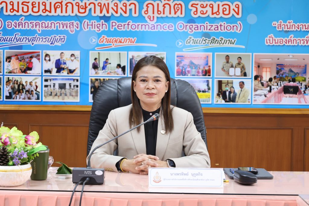 วันที่ 26 มีนาคม 2569 นางพรทิพย์ นุกูลกิจ ผู้อำนวยการสำนักงานเขตพื้นที่การศึกษามัธยมศึกษาพังงา ภูเก็ต ระนอง เป็นประธานการประชุมติดตามและเก็บข้อมูลการปฏิบัติงานของผู้อำนวยการโรงเรียน ครั้งที่ 1 (1 เมษยายน 2569) โดยการนำเสนอผลการปฏิบัติงานของผู้บริหารสถานศึกษา ทั้ง 27 โรงเรียน เพื่อติดตามผลการปฏิบัติงานและเพื่อประกอบการพิจารณาเลื่อนขั้นเงินเดือน มีรองผู้อำนวยการสำนักงานเขตพื้นที่การศึกษามัธยมศึกษาพังงา ภูเก็ต ระนอง ร่วมรับฟัง ณ ห้องประชุมเขาทอย สพม.พังงา ภูเก็ต ระนอง