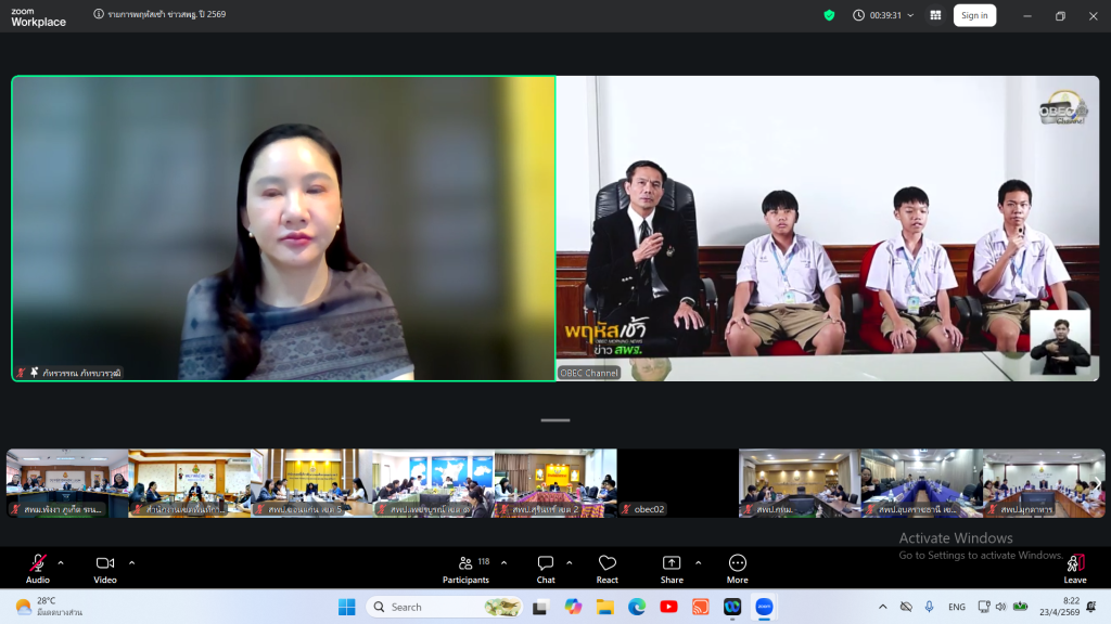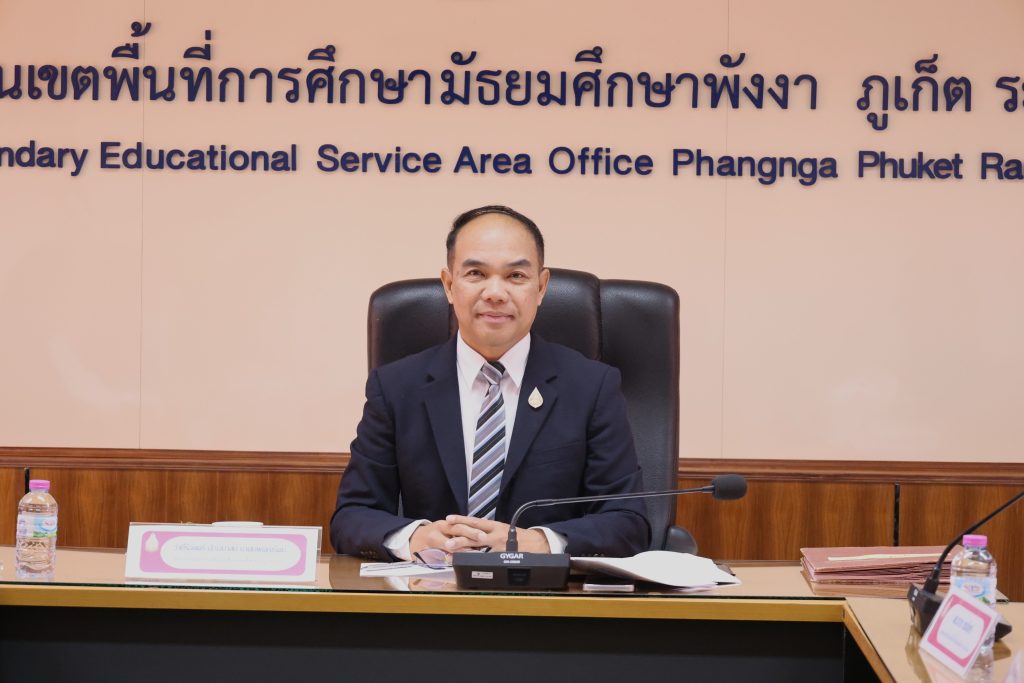 วันที่ 23 เมษายน 2569 เวลา 08.00 น. ว่าที่ร้อยตรี ปัญจมาสน์ มาศนพคุณรัตน์ ผู้อำนวยการสำนักงานเขตพื้นที่การศึกษามัธยมศึกษาพังงา ภูเก็ต ระนอง พร้อมด้วย รองผู้อำนวยการสำนักงานเขตพื้นที่การศึกษาฯ และผู้อำนวยการกลุ่ม/หน่วย ร่วมรับชมรายการ “พฤหัสเช้า…ข่าว สพฐ.” ครั้งที่ 16/2569 ผ่านระบบออนไลน์ เพื่อรับทราบข้อราชการ นโยบายสำคัญ ตลอดจนข่าวสารและกิจกรรมของสำนักงานคณะกรรมการการศึกษาขั้นพื้นฐาน เพื่อให้ผู้บริหารและบุคลากรในสังกัดได้นำแนวทาง ข้อราชการสำคัญ และนโยบายไปสู่การปฏิบัติอย่างมีประสิทธิภาพ อันจะส่งผลต่อการยกระดับและพัฒนาคุณภาพการศึกษาในพื้นที่ให้ดียิ่งขึ้น