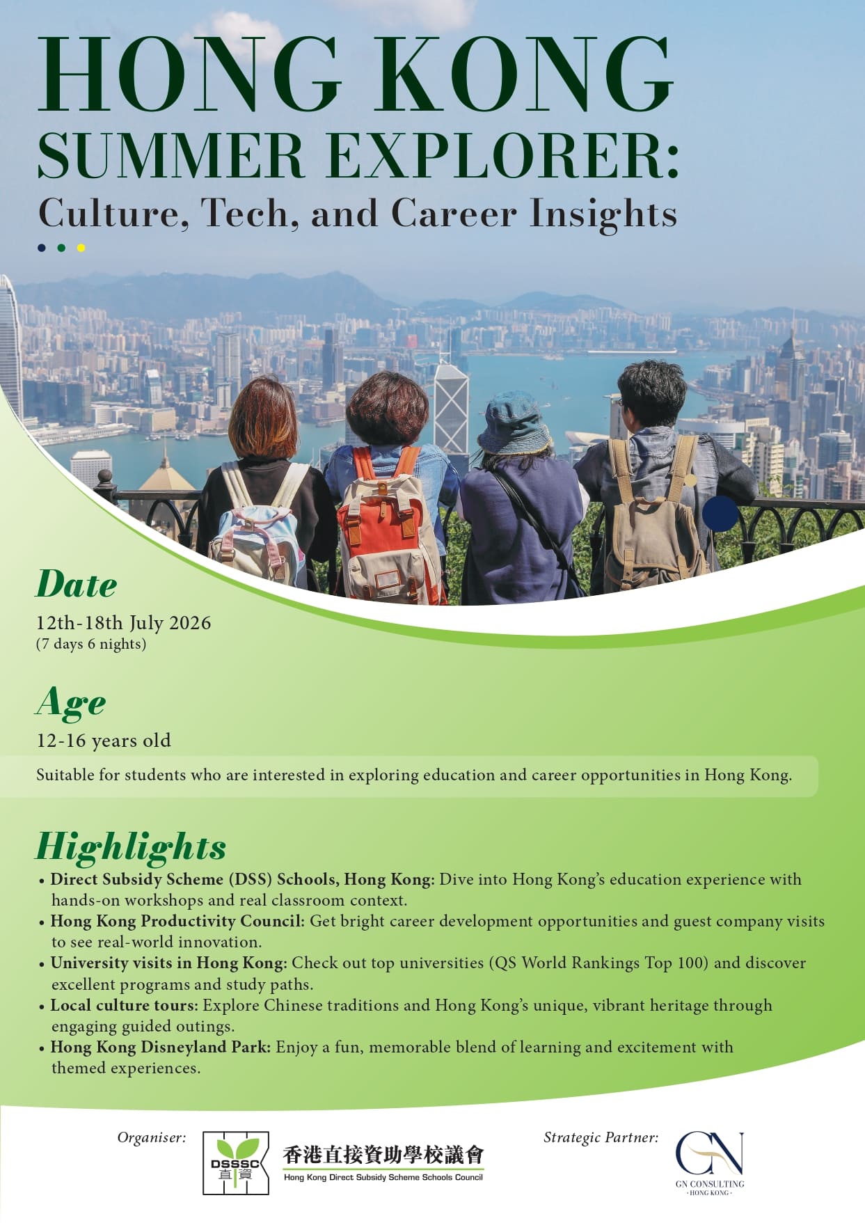Hong Kong Direct Subsidy Scheme Schools Council ขอเชิญชวนนักเรียนที่มีอายุระหว่าง 12-16 ปี ร่วมออกเดินทางไปกับโครงการ Hong Kong Summer Explorer 2026 ทริป 7 วัน 6 คืน (12-18 กรกฎาคม 2026) ที่จะเปลี่ยนช่วงปิดเทอมให้กลายเป็นการผจญภัยที่เปี่ยมด้วยความรู้และแรงบันดาลใจ