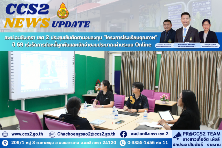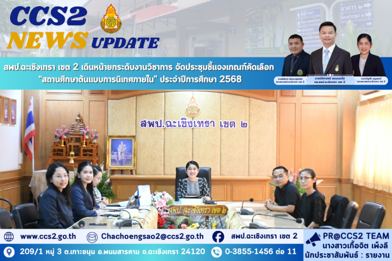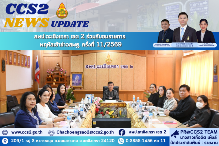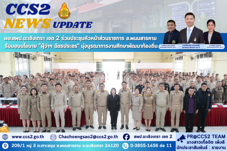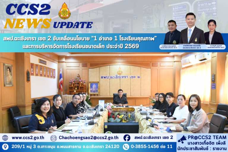 วันพุธที่ 29 เมษายน พ.ศ. 2569 เวลา 09.00 น. นายนิติศาสตร์ พรมแสงใส ผู้อำนวยการสำนักงานเขตพื้นที่การศึกษาประถมศึกษาฉะเชิงเทรา เขต 2 เป็นประธานในพิธีเปิดการอบรมเชิงปฏิบัติการ “การพัฒนาครูแกนนำการบูรณาการ AI สู่การเรียนรู้เชิงสร้างสรรค์ในโรงเรียน 1 อำเภอ 1 โรงเรียนคุณภาพ” ณ ห้องประชุม 1 สพป.ฉะเชิงเทรา เขต 2