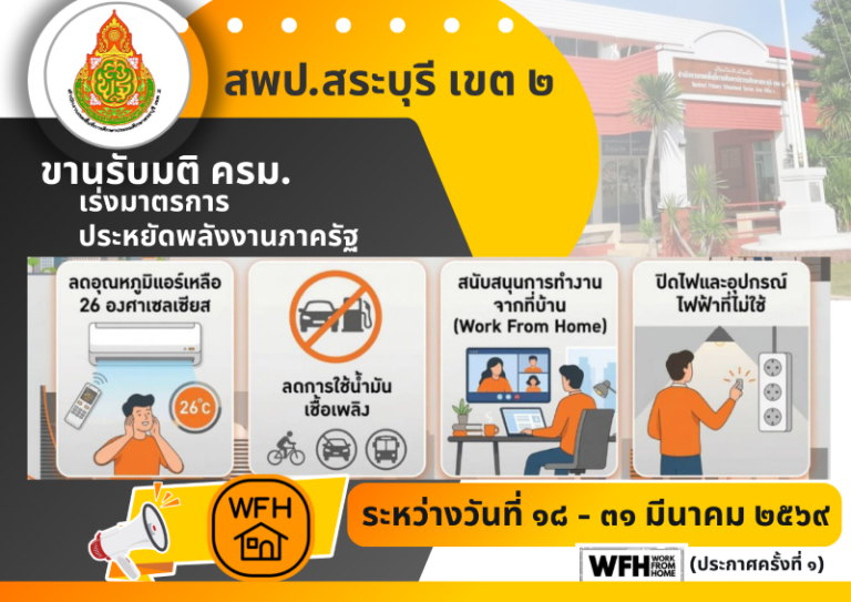 สพป.สระบุรี เขต ๒ ประชุมคณะทำงานส่งเสริมคุณธรรม ครั้งที่ ๑/๒๕๖๙ พร้อมขานรับดำเนินการตามมติ ครม.ในการปฏิบัติงานตามมาตรการ Work From Home