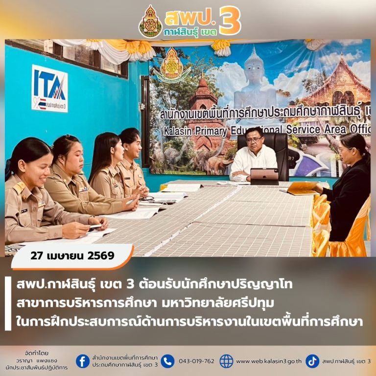 สพป.กาฬสินธุ์ เขต 3 ต้อนรับนักศึกษาปริญญาโท สาขาการบริหารการศึกษา มหาวิทยาลัยศรีปทุม ในการฝึกประสบการณ์ด้านการบริหารงานในเขตพื้นที่การศึกษา