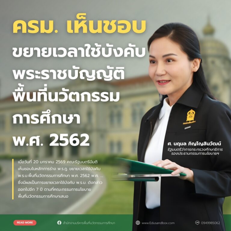 “รมว.นฤมล” เผย ครม.เห็นชอบขยายเวลา พ.ร.บ.พื้นที่นวัตกรรมฯ ไปอีก 7 ปี เพื่อลดความเหลื่อมล้ำทางการศึกษาอย่างต่อเนื่อง