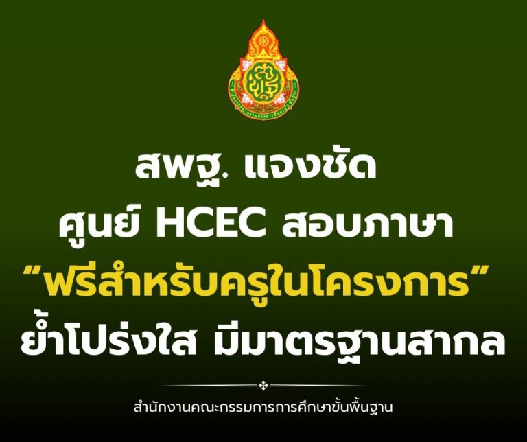 สพฐ. แจงชัด ศูนย์ HCEC สอบภาษา “ฟรีสำหรับครูในโครงการ” ย้ำโปร่งใส มีมาตรฐานสากล