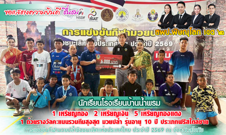 นักมวยปล้ำ ร.ร.บ้านน้ำพรม สพป.พิษณุโลก เขต 2 คว้า 1 ทอง 2 เงิน 5 ทองแดง พร้อมถ้วยรวม กีฬามวยปล้ำชิงชนะเลิศแห่งประเทศไทย