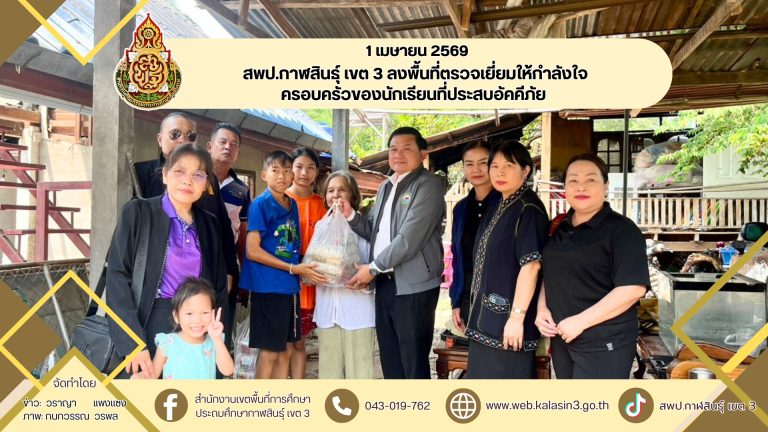 สพป.กาฬสินธุ์ เขต 3 ลงพื้นที่ตรวจเยี่ยมให้กำลังใจครอบครัวของนักเรียนที่ประสบอัคคีภัย