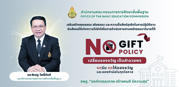 นโยบายการไม่รับของขวัญและของกำนัลทุกชนิดจากการปฏิบัติหน้าที่ “NO GIFT POLICY” ของ สพฐ.