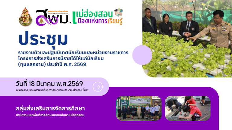 วันที่ 19 – 21 มีนาคม 2569 นายธีรภัทร วงษ์สว่าง ผู้อำนวยการสำนักงานเขตพื้นที่การศึกษามัธยมศึกษาแม่ฮ่องสอน มอบหมายให้ นายบรรดิษฐ์ ม่วงอ่อง รองผู้อำนวยการสำนักงานเขตพื้นที่การศึกษามัธยมศึกษาแม่ฮ่องสอน เข้าร่วมประชุม ชี้แจงแนวทางการขับเคลื่อนโครงการเสริมสร้างคุณธรรม จริยธรรม และธรรมาภิบาลในสถานศึกษาและสำนักงานเขตพื้นที่การศึกษา (โครงการโรงเรียนสุจริต) ประจำปีงบประมาณ พ.ศ. 2569 ณ โรงแรมริเวอร์ไซด์ กรุ